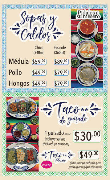 * Productos sujetos a disponibilidad por sucursal, los precios aquí publicados pueden cambiar sin previo aviso. El menú de desayuno está disponible por el momento, sólo en sucursal Villada 211.